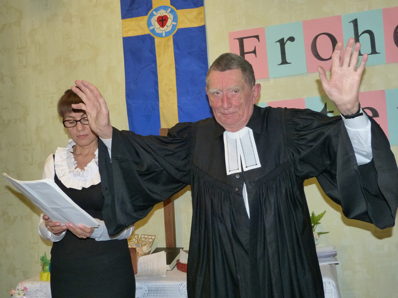 (28.4.2019) Der Botschafter der Bundesrepublik Deutschland in Russland, Rüdiger von Fritsch, hielt sich zu einem Arbeitsbesuch in Krasnodar auf. Am 16. April traf er mit dem Oberbürgermeister der Stadt Krasnodar, Jewgenij Pervyshov, sowie der Vorsitzenden der Städtischen Duma, Vera Galuschko, zusammen. Beide Seiten besprachen die Zusammenarbeit zwischen Krasnodar und der Botschaft der Bundesrepunblik Deutschland in Moskau. Themеn waren darüber hinaus gemeinsame Projekte im Bereich Bildung und Wirtschaft. Danach stattete Rüdiger von Fritsch der deutschen evangelisch-lutherischen Gemeinde in Krasnodar einen Besuch ab. Das Treffen im informellen Rahmen dauerte ungefähr zwei Stunden. Der zu den Osterfeierlichkeiten aus Karlsruhe angereiste Pfarrer Gerhard Leiser berichtete dem Botschafter ausführlich über die fast 25-jährige Geschichte der deutschen Kirchengemeinde und über die Probleme mit der lokalen Verwaltung hinsichtlich der Rückgabe des Kirchengebäudes. Der Vorsitzende der Krasnodarer städtischen deutschen national-kulturellen Autonomie, Alexander Rothermel, machte den hohen Gast mit den Aufgaben der gesellschaftlichen Organisationen vertraut, die sich darum bemühen, die kulturellen Traditionen der Russlanddeutschen in Krasnodar erhalten, wo mehr als 2000 Russlanddeutsche leben. Mit großem Interesse informierte sich der deutsche Botschafter über die Arbeit des Internetportals karlsruhe-krasnodar.de, über die gemeinsamen Projekte im Bereich des Journalismus wie Fotoausstellungen, den Austausch von Fernsehberichten und weiteren Aktivitäten. Er war freudig überrascht, als er das zweisprachige, von Jan-Dirk Rausch und Swetlana Nikiforowa verfasste Buch „Karlsruhe-Krasnodar: 3240 km sind keine Entfernung“, als Geschenk von Swetlana Nikiforowa entgegennehmen durfte.